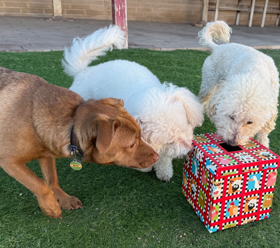 Paws Up! rotates group activities each week to give the dogs new, exciting experiences to look forward to. We alternate between photoshoots, enrichment activities, grooming, agility, and more to socialize the dogs to different handling techniques and engage their brains with fun new endeavors.